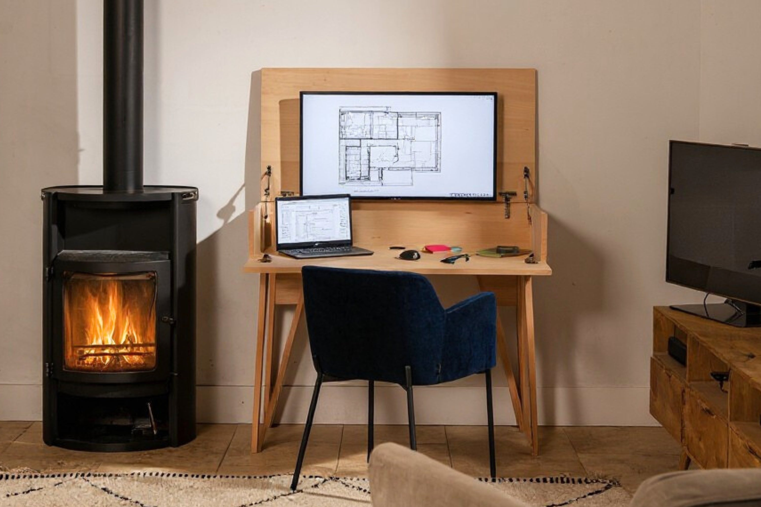 Un bureau qui se fera oublier une fois la journée terminée pour passer en mode détente, une fois refermé.