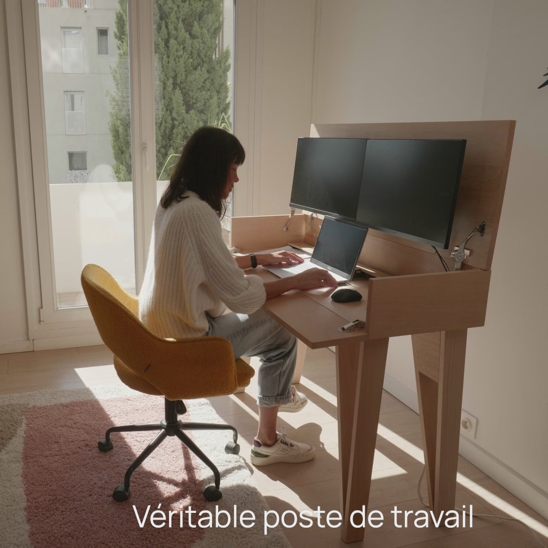 Avec la possibilité d’accueillir 1, 2 ou 3 écrans, le bureau by DOM optimise votre posture et vos performances.