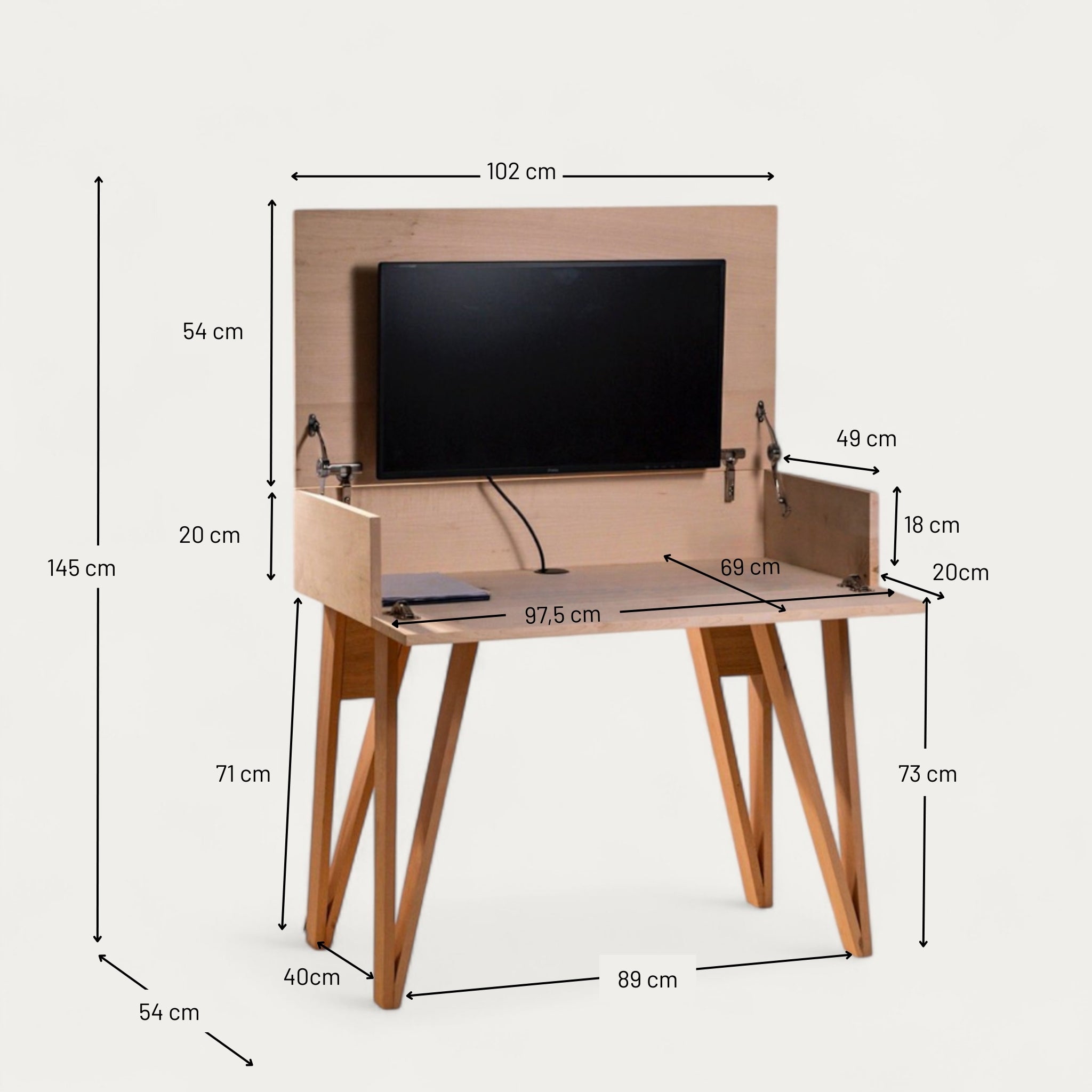 Ouvert, c’est un poste de travail complet (100 x 70 cm) qui optimise votre posture et qui peut accueillir un grand écran de 32 pouces.